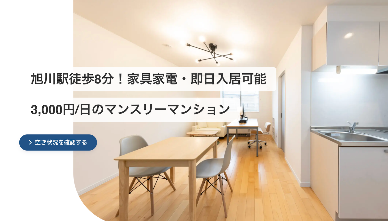 1.SkyBlu旭川|民泊仕様の快適空間とセルフチェックインでスピーディーな即日入居が可能