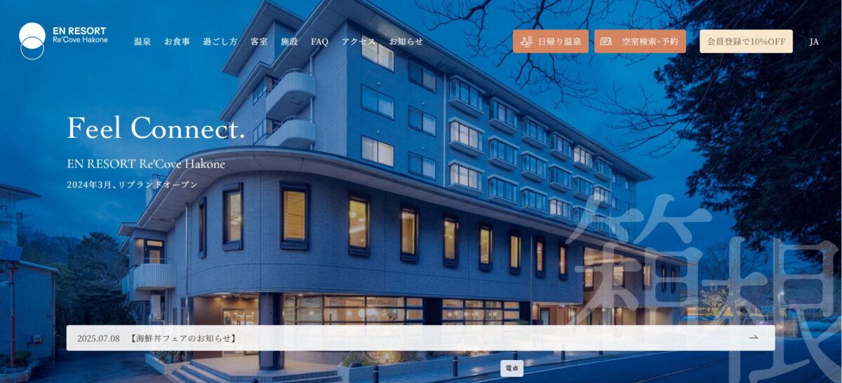 ホームページhttps://resort.en-hotel.com/recove-hakone/ja/