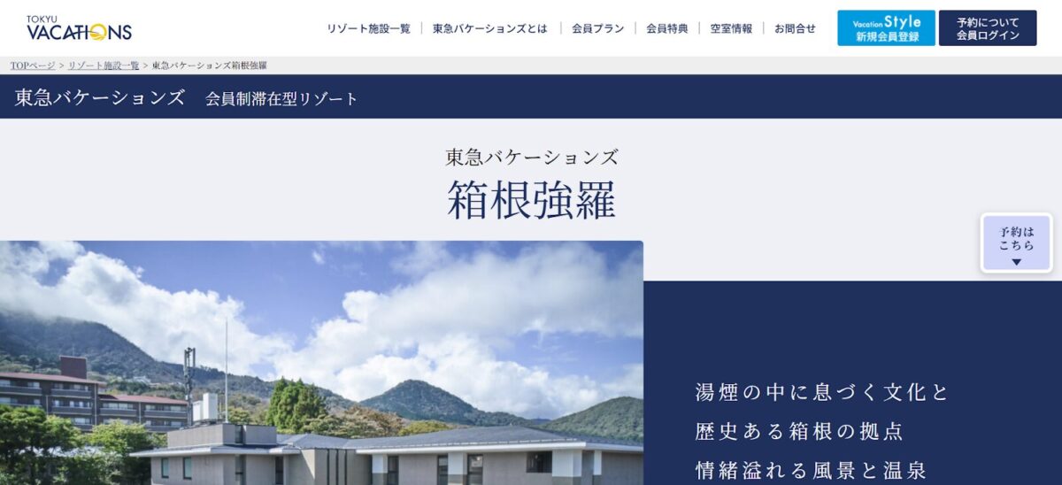 東急バケーションズ箱根強羅の公式サイトを見てみる