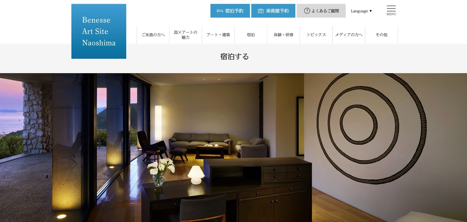 | 【直島】ベネッセハウス | ・近隣に美術館やギャラリーが多い ・施設内に飲食店やショップが豊富 |